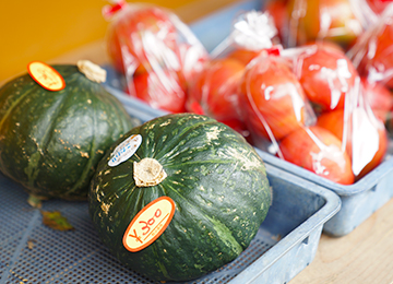 三浦野菜で知られるとおり、三浦には多くの農家が自慢の野菜を作っています。PEEKABOOもかぶをはじめ、スイカ、トマト、きゅうり、かぼちゃ、ホウレン草を作っています。