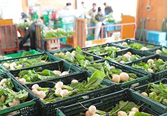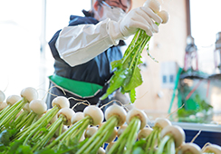 かぶの分別、束ね、個数管理などの作業はセンサーやオートメーションシステムなどテクノロジーを使っており、女性や高齢者など誰もが容易に作業できる環境となっています。実際に地域にお住いの障碍者の方々がここで働いています。